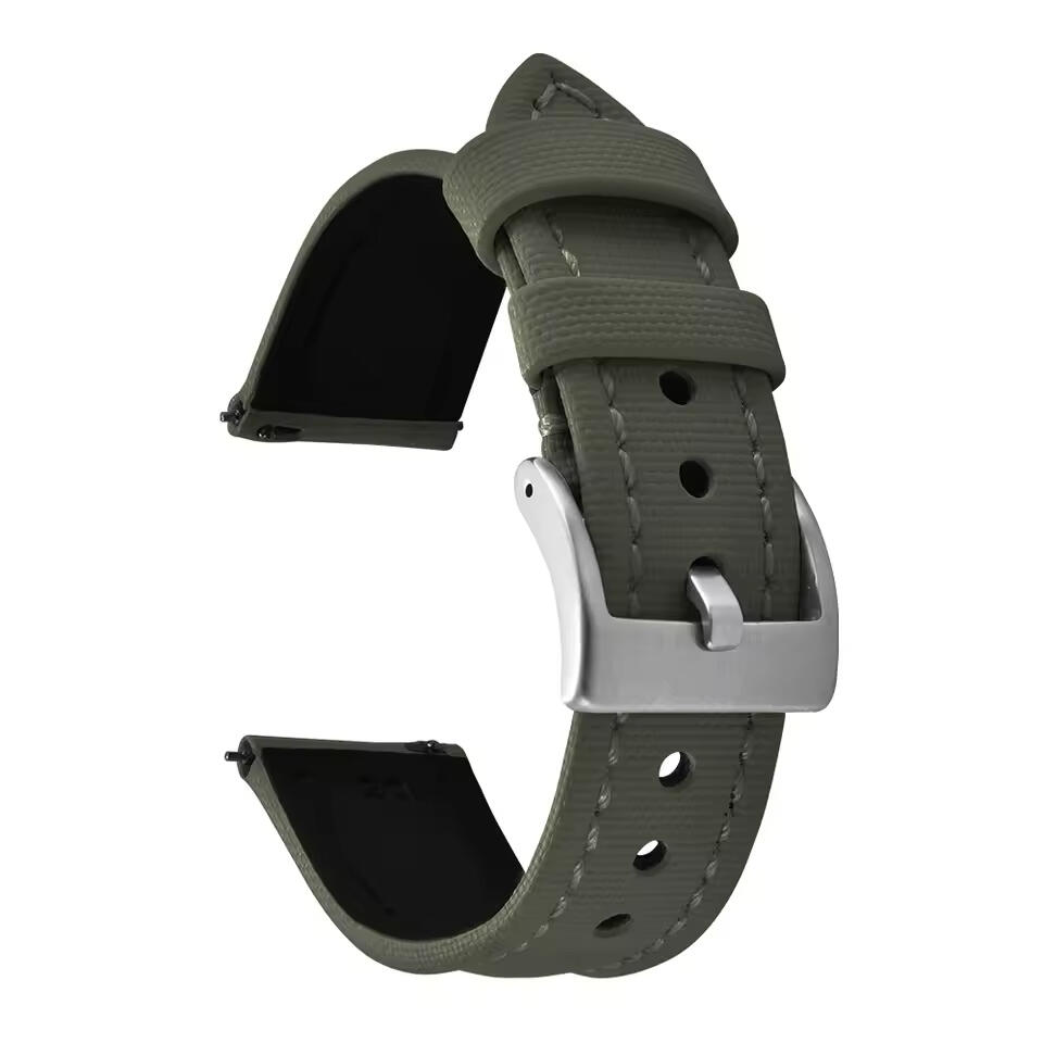 ‣ Our first premium strap. Made from woven sailcloth with a water-resistant backing, featuring a brushed steel buckle and quick-release spring bars